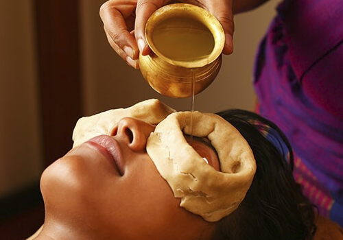 Sirodhara is a deeply relaxing Ayurvedic therapy in which a continuous stream of warm medicated oil, milk, buttermilk, or herbal decoction is gently poured over the forehead. The rhythmic flow stimulates the “third eye” region and calms the nervous system. Sirodhara is widely used to reduce stress, anxiety, insomnia, hypertension, and mental fatigue. Sirodhara balances Vata and Pitta doshas, enhances mental clarity, improves sleep quality, and induces a profound state of relaxation and emotional well-being.